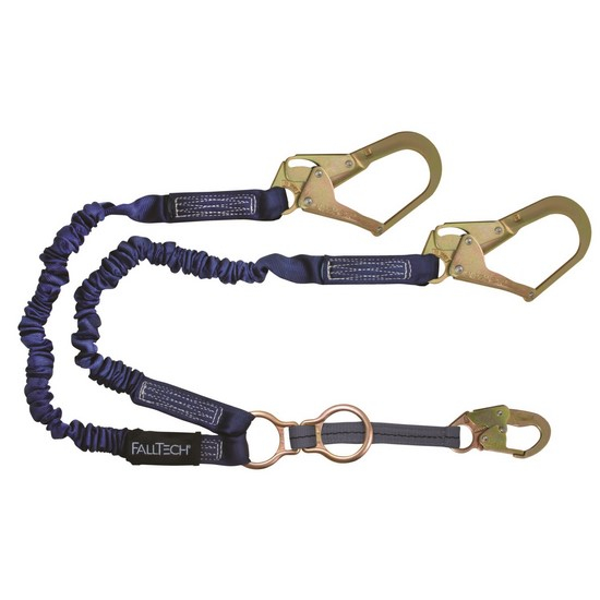 FallTech, 8240Y32D, ElasTech 4-1/2' to 6' Y-Leg Lanyard with 1 Snap Hook, 2 Rebar Hooks and D-Ring