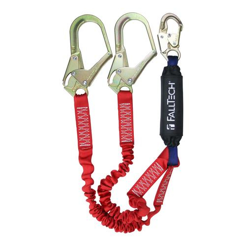 FallTech, 8247EY3, 4-1/2 - 6' Ironman Lanyard Elastic-Leg SAL 6'/12' FF Y-Leg Snap Hook/Rebar Hook