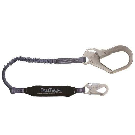 FallTech, 8256EL3, ViewPack 4-1/2' to 6' Elastic Core, Single Leg with 1 Snap Hook and 1 Rebar Hook