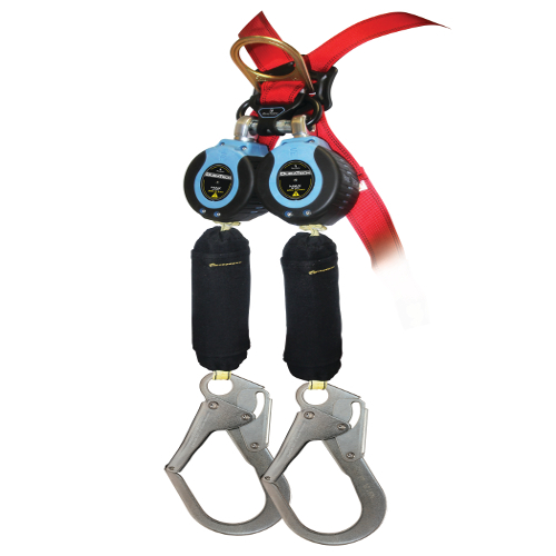 FallTech, 82909TB3, DuraTech Max 9' Twin Leg Web SRD with Steel Carabiner and Steel Rebar Hook