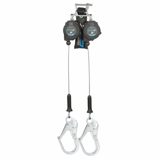 FallTech, 83208TP3, CTX 8' Cable Class 2 Leading Edge Personal SRL-P, Twin-Leg with Steel Rebar Hooks