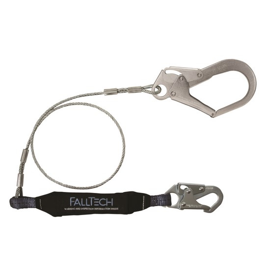 FallTech, 83573, ViewPack 6' Single Leg Lanyard/ Vinyl-Coated Cable with Snap Hook & Rebar Hook