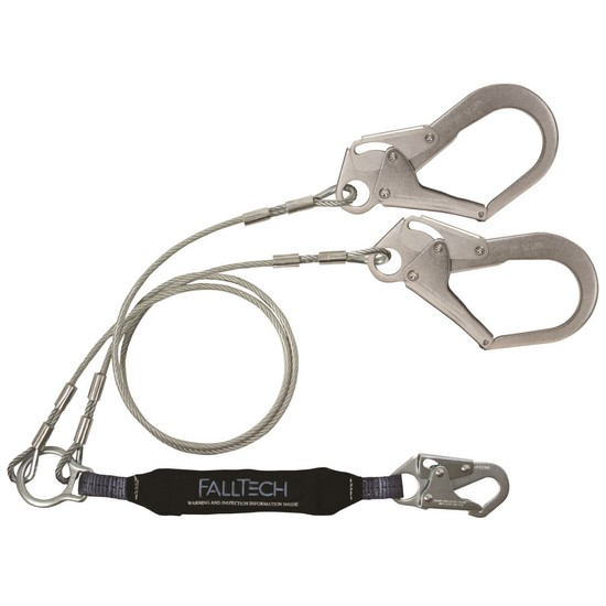 FallTech, 8357Y3, ViewPack 6' Y-Leg Lanyard/ Vinyl-Coated Cable with Snap Hook & 2 Rebar Hooks