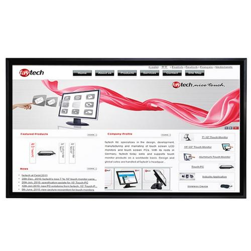 Large Format Multi-Touch Monitors are the right choice for rugged and harsh industrial environments. On the other side fits the sturdy, protecting Aluminum frame perfect in any high class POS environment. The capacitive 10-finger multi touch panels provide an incredible good touch usage feeling, like working on a large smartphone. An industrial HD LCD panel with energy-saving LED technology, A+-quality, wide viewing angle and capacitive multi- touch panel, makes these the perfect interactive Touch solution for digital signage, way-finding, classrooms, dealerships, supermarkets, hotels, sports arenas, fashion shows, industrial 4.0 projects, interactive visualizations and many other uses.