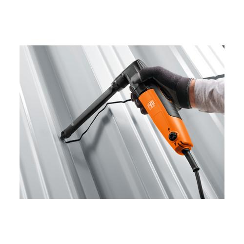 Compact nibbler for trapezoidal sheet metal in roof and facade construction.