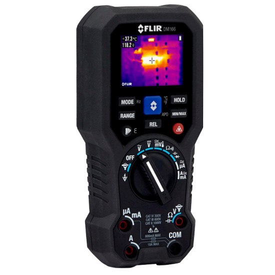 The FLIR DM166 is the most affordable multimeter with built-in thermal imaging – a must-have tool for commercial electricians, automation, electronics, and HVAC technicians. Featuring Infrared Guided Measurement (IGM™) powered by an 80 x 60 FLIR thermal imager, the DM166 visually guides you to the precise location of temperature anomalies and potential problems faster, more safely, and efficiently. The feature-packed multimeter is an ideal tool for troubleshooting and diagnosing complex issues in both high-voltage and low-voltage applications.