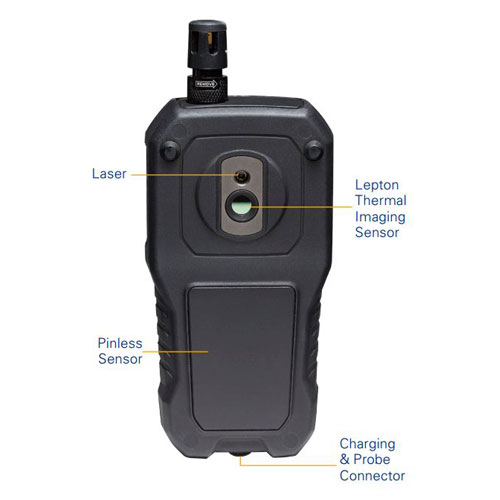 - An 80 x 60, 4800-pixel Lepton® thermal imager powers IGM technology, visually indicating potential moisture areas via the color display