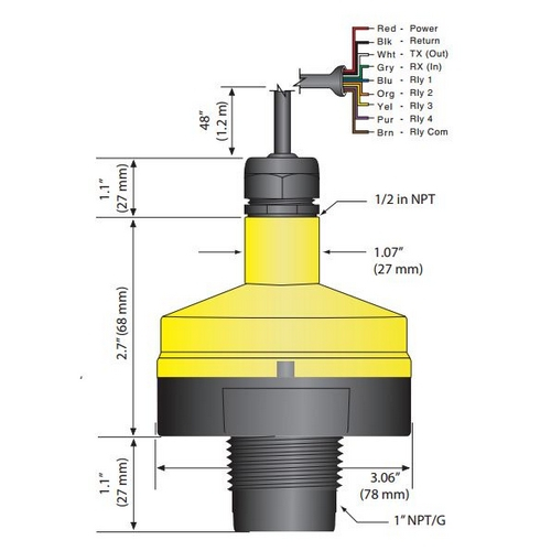 - Level detection, switch and control functions up to 9.8' (3m)