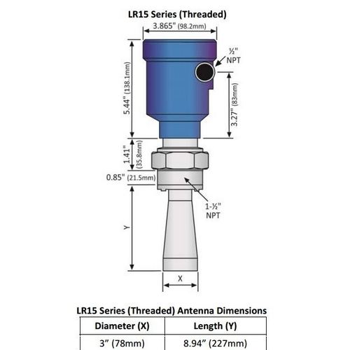 Flowline, LR15-0010-30, EchoPulse 26 GHz Pulse Radar Level Transmitter with 3" Horn