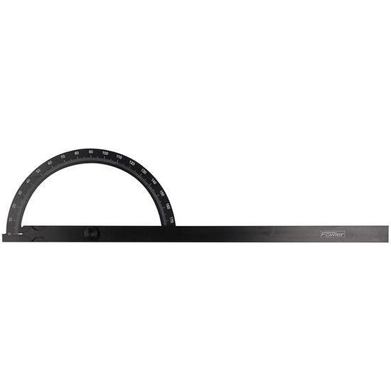 Fowler's Light Line Protractors offer light weight angle measurements. Made of black anodized, hard coated aluminum with high contrast white numbering. The opened base makes it very easy to handle. Laser marked in 1° graduations. Used in machining, marking, carpentry and many other applications.