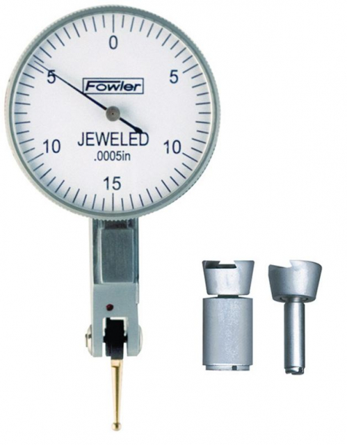 All Fowler Test Indicators include bidirectional constant clockwise rotation, automatic reversal, three dovetail mountings, jeweled movement, two dovetail clamps and a molded case.