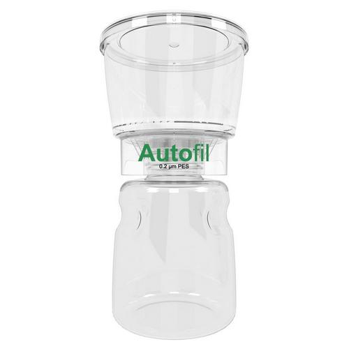 Autofil 500ml is available as either a complete system or as a funnel only bottle-top vacuum filter. The patented next generation product comes with 3 different asymmetric PES membrane pore sizes ( .1um, 0.2um, or 0.45um). Our membrane is low protein binding and surfactant-free.