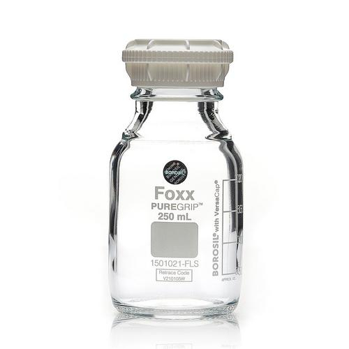 Foxx Life Sciences, 1501021-FLS, PUREGRIP Bottle, Reagent, Transparent Graduated with GL45 Screw Cap and Pouring Ring, 250 mL