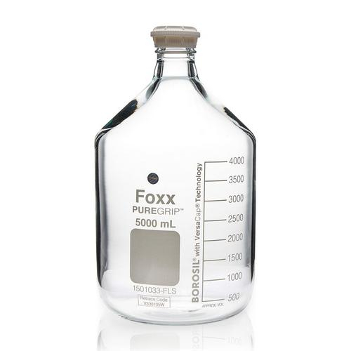 Foxx Life Sciences, 1501033-FLS, PUREGRIP Bottle, Reagent, Transparent Graduated with GL45 Screw Cap and Pouring Ring, 5000 mL