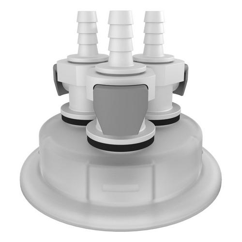 Quick-connect hose barb options include quick-connect port combinations of three, with 1/4"hose barb sizes, as well as molded-in hose barb options,. The Clearview® adapter is also available for users who need a crystal-clear window into the carboy for visualizing solution homogenization.