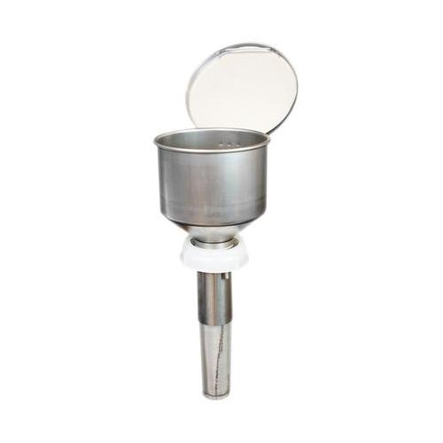 Foxx Life Sciences EZwaste® 70mm Safety Funnel, Stainless Steel features an overfill protection that will prevent spillage of liquid during filling. It comes with an attached lid that will keep VOCs from evaporating into the air. Our Safety funnel also features a removable and easy to clean flame trap that will prevent the liquid waste from igniting. Applications include but not limited Pharmaceutical, biotech, and Laboratories.