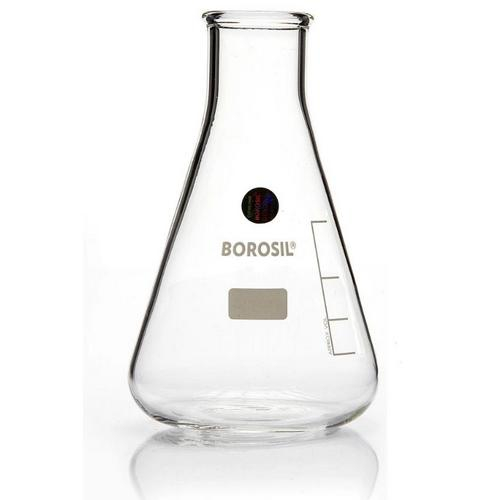 Borosil brand Flasks are designed to deliver the best combination of thermal shock resistance along with physical strength and resistance to chemical attack. Borosil's Narrow Mouth Conical Erlenmeyer Flasks comply with IS 1381(Part I), DIN/ ISO 1773 and are manufactured to withstand the demands of the modern laboratory. Uniform wall thickness distribution makes these flasks ideal for heating. The conical form makes these flasks also suitable for mixing liquids. The easy-to-read scale and large labeling field helps to ensure for easy marking. 25ml to 5L are graduated in a ceramic white color.