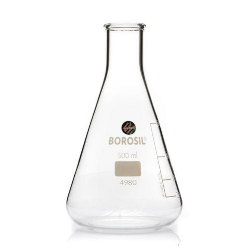 Uniform wall thickness distribution makes these Flasks ideal for heating. The conical form makes them suitable for mixing liquid. These Flasks can be closed with a glass stopper.
