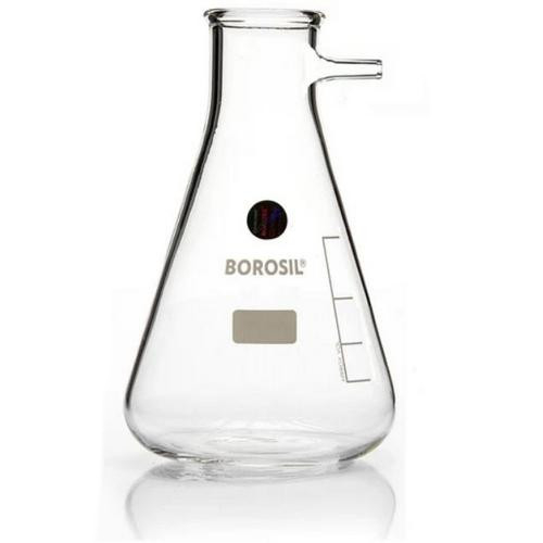 Borosil brand Flasks are designed to deliver the best combination of thermal shock resistance along with physical strength and resistance to chemical attack. Borosil's Bolt Neck Filtering Flasks are manufactured to withstand the demands of the modern laboratory. They are blown in special molds with a design to convey maximum mechanical strength. The neck finish is developed for strength and to ensure a proper stopper fitting.