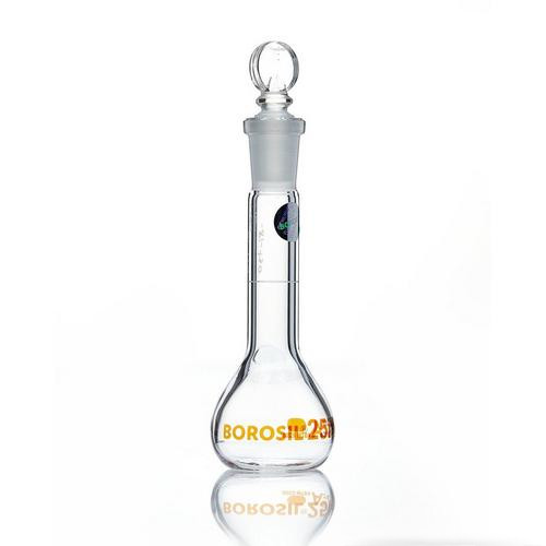 Foxx Life Sciences, 5647009D, Borosil Volumetric Flask, Wide Neck, With Glass I/C Stopper, Class A, Ind Cert 25 mL