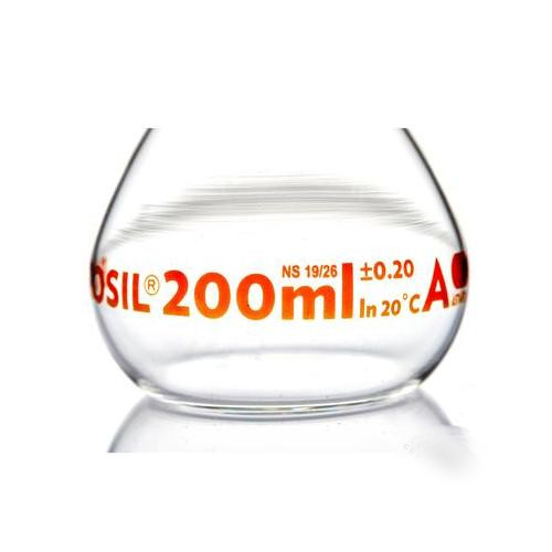 Foxx Life Sciences, 5647020A, Borosil Volumetric Flask, Wide Neck, With Glass I/C Stopper, Class A with Batch certificate, 200 mL