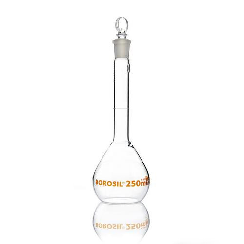 Foxx Life Sciences, 5647021A, Borosil Volumetric Flask, Wide Neck, With Glass I/C Stopper, Class A with Batch certificate, 200 mL