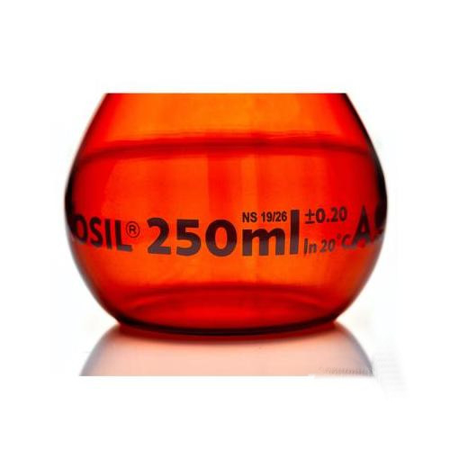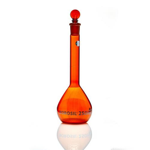 Foxx Life Sciences, 5657021A, Borosil Amber Volumetric Flask, Wide Neck, With Glass I/C Stopper, Class A with Batch certificate, 250 mL