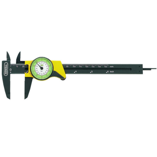 The #142 6 In. Plastic Dial Caliper with Inches Readout can make inside, outside, depth and step measurements in inches.