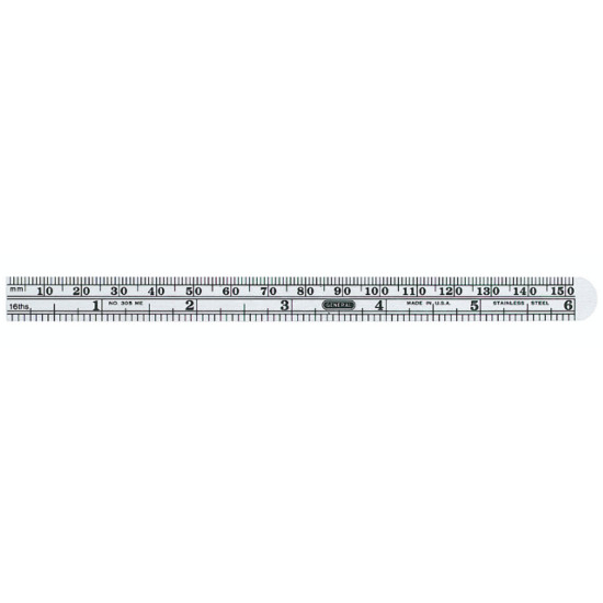 The #305ME Economy Precision 150mm/6 In. Flexible Steel Rule with 16th In. Graduations can make very precise measurements.