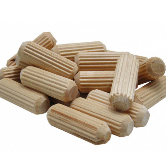 The #840012 1/2 In. Fluted Dowel Pins swell on contact with water-based glue for an extra-tight fit.