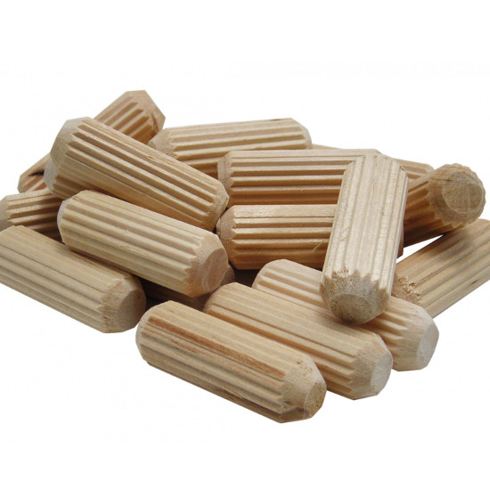 The #840014 1/4 In. Fluted Dowel Pins swell on contact with water-based glue for an extra-tight fit.