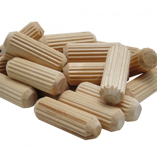 The #840038 3/8 In. Fluted Dowel Pins swell on contact with water-based glue for an extra-tight fit.