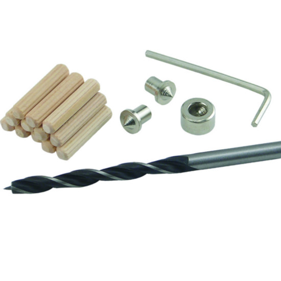 The #841014 1/4 In. Dowel Accessory Kit complements the #840 Pro Doweling Jig Kit and the #841 E-Z Pro Doweling Jig Kit.