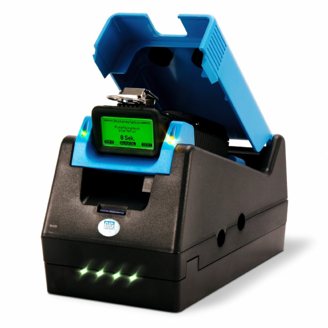 The function test (bump test) and, if necessary, the adjustment must be carried out before each use of a portable gas detection device. To make these necessary measures simple and time-saving in accordance with DGUV information 213-056 (T021) and 213-057 (T023).