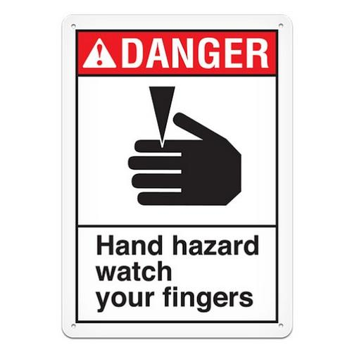 Incom, ANS1012A, Aluminum Safety Sign "Danger Hand Hazard", Size 10" x 14"