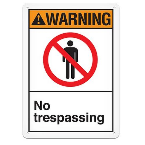Incom, ANS2001V, Adhesive Vinyl Safety Sign "Warning No Trespassing", Size 10" x 14"
