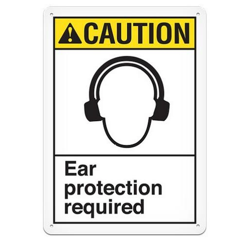 Incom, ANS3011A, Aluminum Safety Sign "Caution Ear Protection", Size 10" x 14"