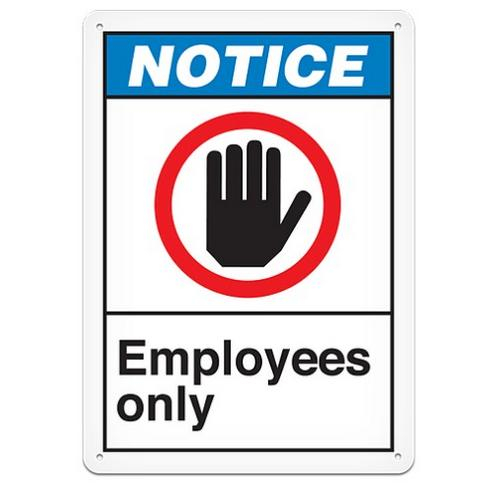 Incom, ANS4000P, Semi-Rigid Plastic Safety Sign "Notice Employees Only", Size 10" x 14"