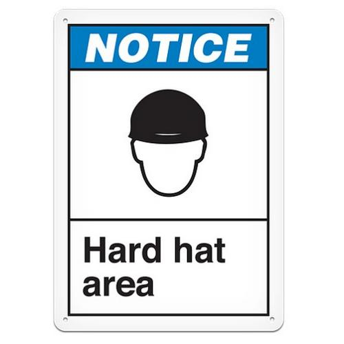 Incom, ANS4008P, Semi-Rigid Plastic Safety Sign "Notice Hard Hat Area", Size 10" x 14"