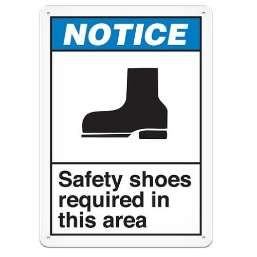 Incom, ANS4011P, Semi-Rigid Plastic Safety Sign "Notice Safety Shoes", Size 10" x 14"