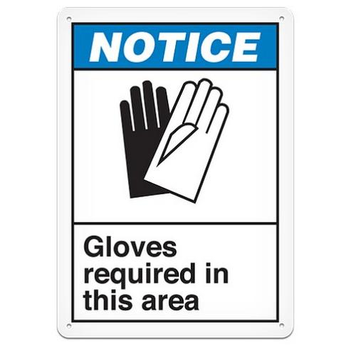 Incom, ANS4013P, Semi-Rigid Plastic Safety Sign "Notice Gloves Required", Size 10" x 14"