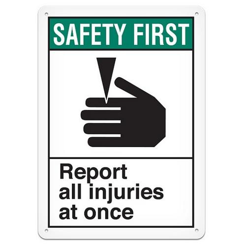 Incom, ANS5009V, Sign Safety "First - Report All Injuries at Once", 10" x 14", Adhesive Vinyl