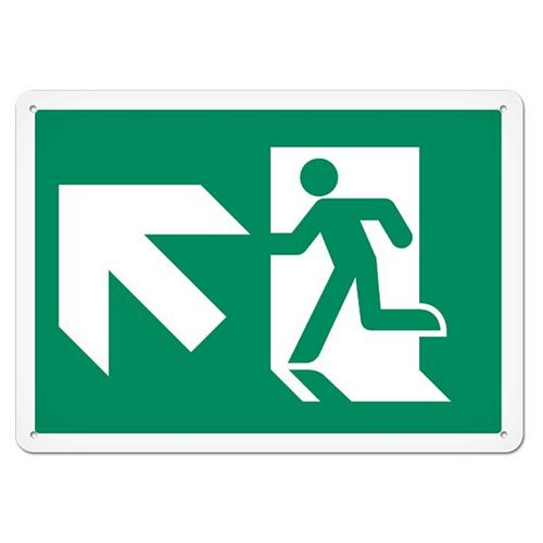 Incom, DFS124P, Sign Fire, Exit Up Left, 10" x 14", Semi-Rigid Plastic