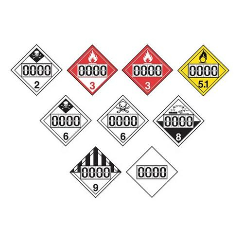 Versatile flip charts help make changing numbered placards quick and easy. This flip placard system contains both Canadian & US legends. Design is built for durability, heavy .031" aluminum back plate with baked-on polyester finish to resist fading. The legends are screen printed on corrosion resistant aluminum panels. Stainless steel spring clips are mounted to hold the pages in place and all corners are rounded for easy handling. Has an unpainted back plate to blend with trailers.
