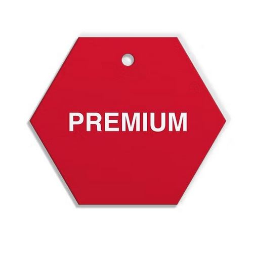 CPPI "Premium" fuel type identification plastic tags are commonly displayed on fuel tank trailers, and vehicles to help both identify products and prevent mixing. Easily identify different categories of petroleum such as aviation products, middle distillates, heavy fuel oils, lubricating oils and solvents by utilizing recognizable shapes. Made from a thick 0.055" high-density polyethylene plastic 2.56" diameter hexagon (6.5cm) tag with a 0.3" (7.5mm) drilled hole.