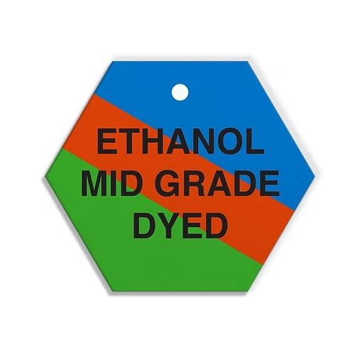 CPPI "Ethanol Mid Grade Dyed" plastic fuel type identification plastic tags are commonly displayed on fuel tank trailers, and vehicles to help both identify products and prevent mixing. Easily identify different categories of petroleum such as aviation products, middle distillates, heavy fuel oils, lubricating oils and solvents by utilizing recognizable shapes. Made from a thick 0.055" high-density polyethylene plastic 2.56" diameter hexagon (6.5cm) tag with a 0.3" (7.5mm) drilled hole.