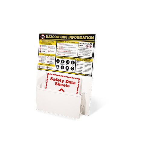The station is printed in full color on a mounting board and comes with a sturdy metal pocket. Each station also comes with a standard 3 ring SDS printed binder with A - Z alphabetical dividers to sort all of ySafety Data Sheets. The mounting board is constructed of 1/4” rigid plastic with 4 mounting holes to provide easy mounting and years of durability.