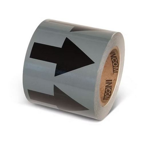 Incom, PMA457, Pipe Flow Arrow Tape Gray With Black Arrows 4" x 108'
