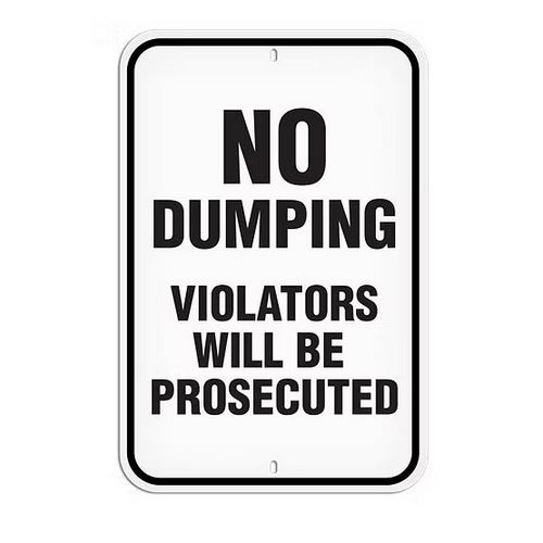 Incom, PSS1029R, Parking Sign: "No Dumping Violators Will Be Prosecuted"