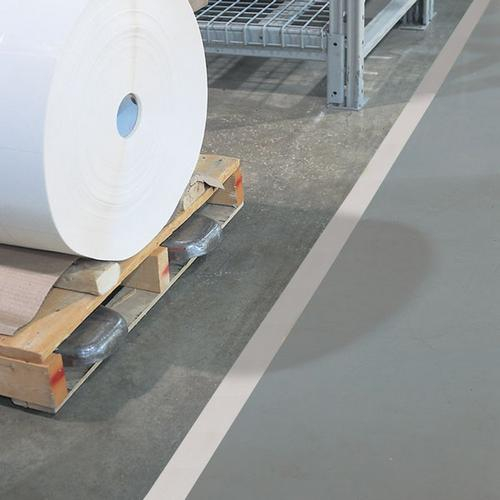 White tape designed to designate traffic aisles, housekeeping markings, staircase (risers, direction and border limit lines) and directional signs.